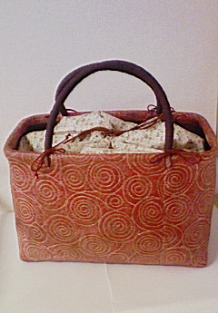 ご主人の転勤で宿毛へお引越しされた友人から柿渋で染めた籠、図書館へ行くときや、買い物へ行くときに凄く役に立っていると、ありがとうメールが携帯に入っていました~。 年下の彼女はとても可愛らしい人で~プレゼントした籠を日々の生活に取り入れてくれて、ありがとうメールを送ってくれるなんて~こっちが使ってくれてありがとうの気持ちになります。本当に嬉しいです。 最近はマイバックやマイカゴがEcoの為に使う人が増えてとても素晴らしいことだと思います。一閑張りの籠もEco籠として普段の生活に役立てくれる人が増えると~素敵だなぁ~と思うのでした。