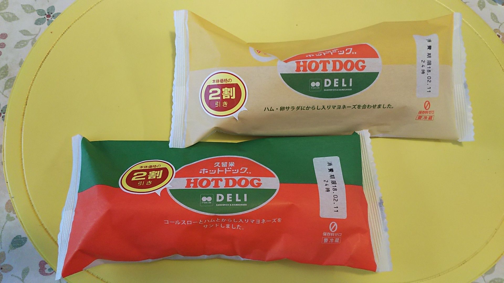 日曜日の夕方、奥様とつらーっと近くのスーパーに立ち寄りますと、1年前ぐらいに惜しまれつつなくなった久留米の有名パン屋キムラヤ(閉店したよね)のアレを発見しましたっよく見ると違いました…が、パッケージの柄は完全に有名なキムラヤのホットドッグだよね久留米ホットドッグって書いてあるし…両サイドが絞られた包み紙方式ぢゃないけど。で、振り替え休日の翌朝…消費期限が半日ほど過ぎちゃいましたが2本まとめてパックンチョしちゃいましたまずはベーシックタイプの久留米ホットドッグ。細長いパンにハムとコールスローが挟んであるやつで、フツー一般に思い浮かべるソーセージを挟んだヤツとは違います。からし入りマヨネーズがぴりっとアクセントです続いては別バージョン、ハム&からし入りマヨネーズは一緒ですが、コールスローが卵サラダにチェンジですコレはコレで美味しいのでありますが…やはりコールスローの方がワタクシの好み奥さん曰く、キムラヤで双璧を成していたまるあじもあったとのこと…コレもフランソワで引き継いだみたいでして食べてみたいです…ってか奥さん、気を利かして買ってきてクレよ