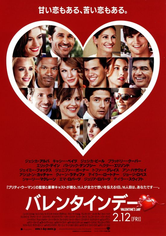 数多ある映画作品の中には、タイムリーな時期に観ないといけないモノがあります2015年の10月21日の水曜日に観なければならなかった極端な作品もございますが、本日観た作品の監督を務めましたゲーリー・マーシャルが手掛けるものには時期を選んで観るのが多いような気がします…そーでもないお話はとにかくイッパイでして…ロサンゼルスを舞台に老若男女のバレンタインの1日を描いた作品と書くと適当だと思いますバレンタインデーで朝から色めく男と女…同棲中の彼女に朝一でプロポーズする男がいれば、バレンタインの夜が一人になるためサンフランシスコ出張を引き留める女性、夜を共にしたばかりのカップルに飛行機の座席がたまたま隣り合わせだった男女、熟年夫婦に今日こそ告白だと意気込む男の子から今日こそ彼女と××だと意気込む学生さんまで…とにかくエピソードが満載過ぎまして粗筋が書けませんバレンタインの駆け引き合戦は、是非ご自分の目と耳でご確認してということでご了承下さいそして演者さんですが…コレもポスターを見れば判るとおり有名ドコロがイッパイ登場でして…コチラも是非ご自分の目でご確認ということでご了承下さいまぁ色々なラブエピソードが展開されますが所詮映画の中の美男美女の出来事よ…っと思うなか、ひとつウチにも訪れるやもしれぬエピソードがありました。それがヘクター・エリゾンドとシャーリー・マクレーンが演じます熟年夫婦のお話でして…銀婚式を迎えた我が夫婦ですが金婚式を迎えるぐらいに奥さんか衝撃の発言があるのではと映画を観て警戒した次第なになに、そもそも金婚式すらも迎えられないんぢゃないのってほっとけやっしかし2月14日に家で映画ってのもツライわぁぁぁ…