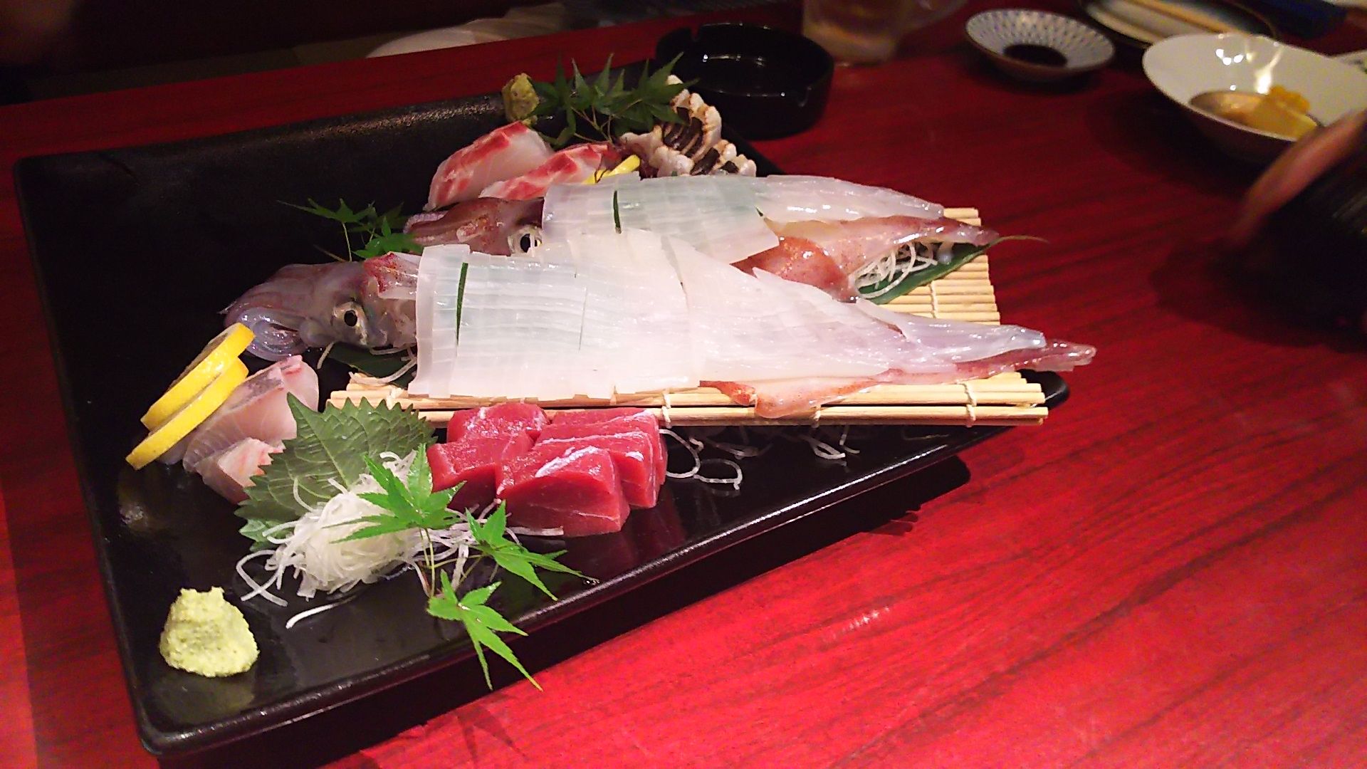 小鉢に舌鼓してますと、呼子直送のイカの活造りにお刺身四点盛がデーーーンと登場です