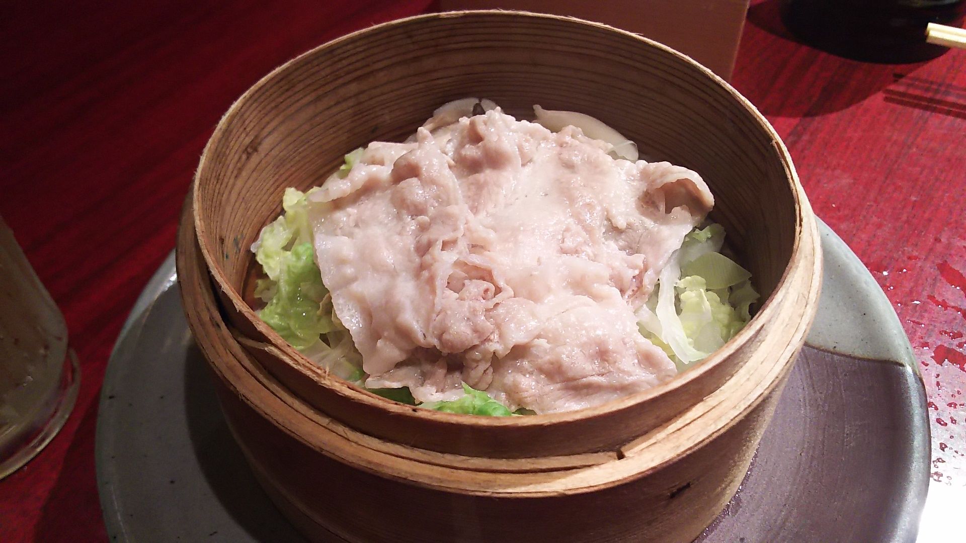 コレはメインの鹿児島産六白黒豚のせいろ蒸し…ポン酢で頂くと美味しいぃぃぃ