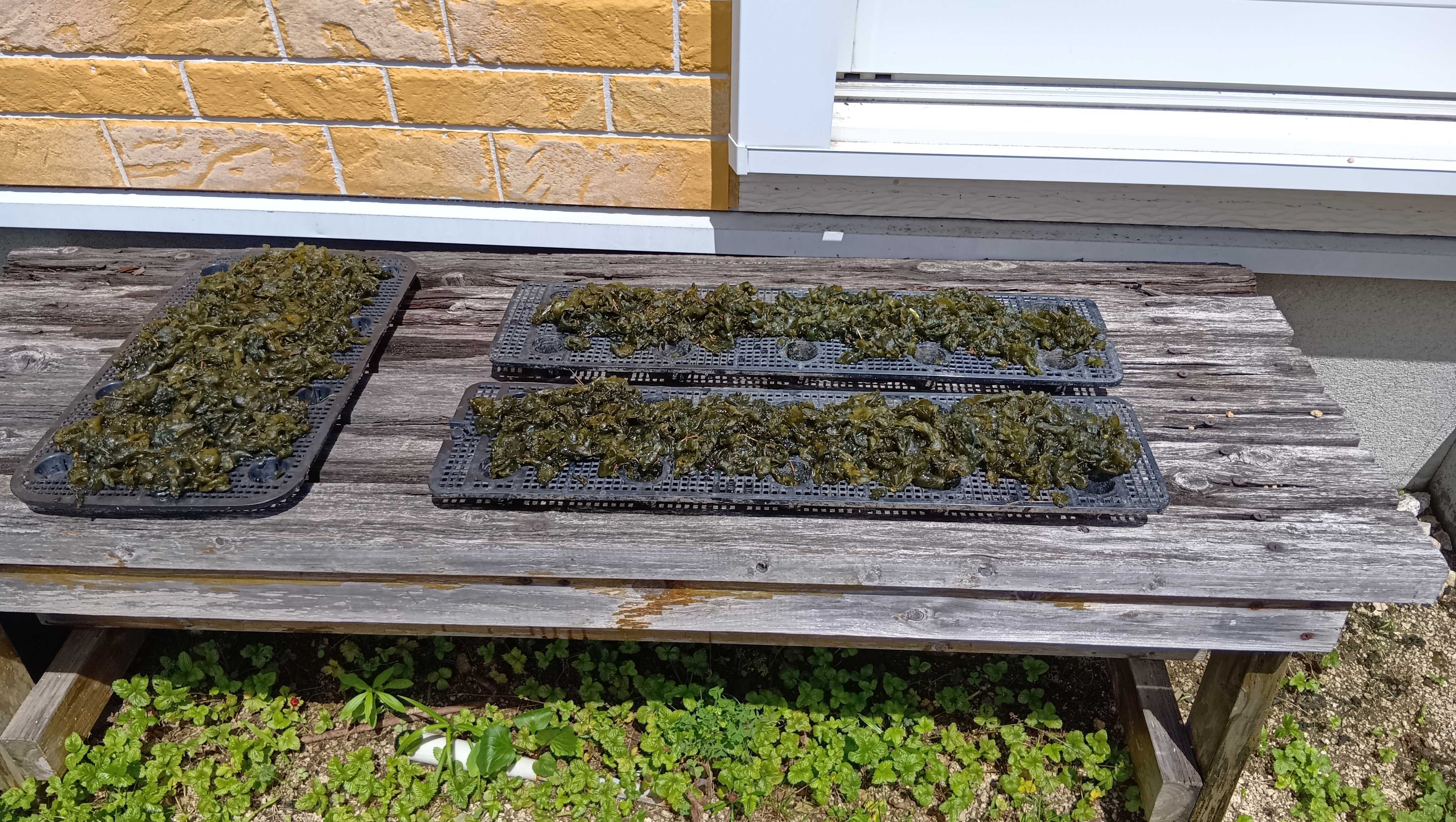 なので蒸し暑い中、一個一個手で取り…このままじゃ水分を含んで重いので、天日干し