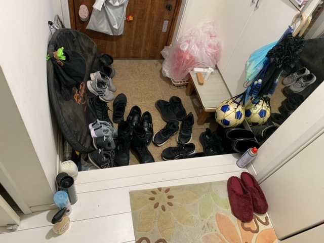 汚い玄関をどーにかキレイにしたい。なんて思いつつも…もう何年経ってしまっただろう…とりあえず、右側の下駄箱に入ってるオレの革靴を出してみる。カビだらけ…
