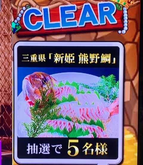 TV『ネプリーグ』観てて…家族で一緒にワイワイ観れるクイズ番組良いね☆んで、dボタンで視聴者プレゼントに応募できるクイズを。見事クリアー☆さすがオレ(笑)☆てな訳で、応募したぞ。三重県の「新姫 熊野鯛」当たりますようにm(_ _)m
