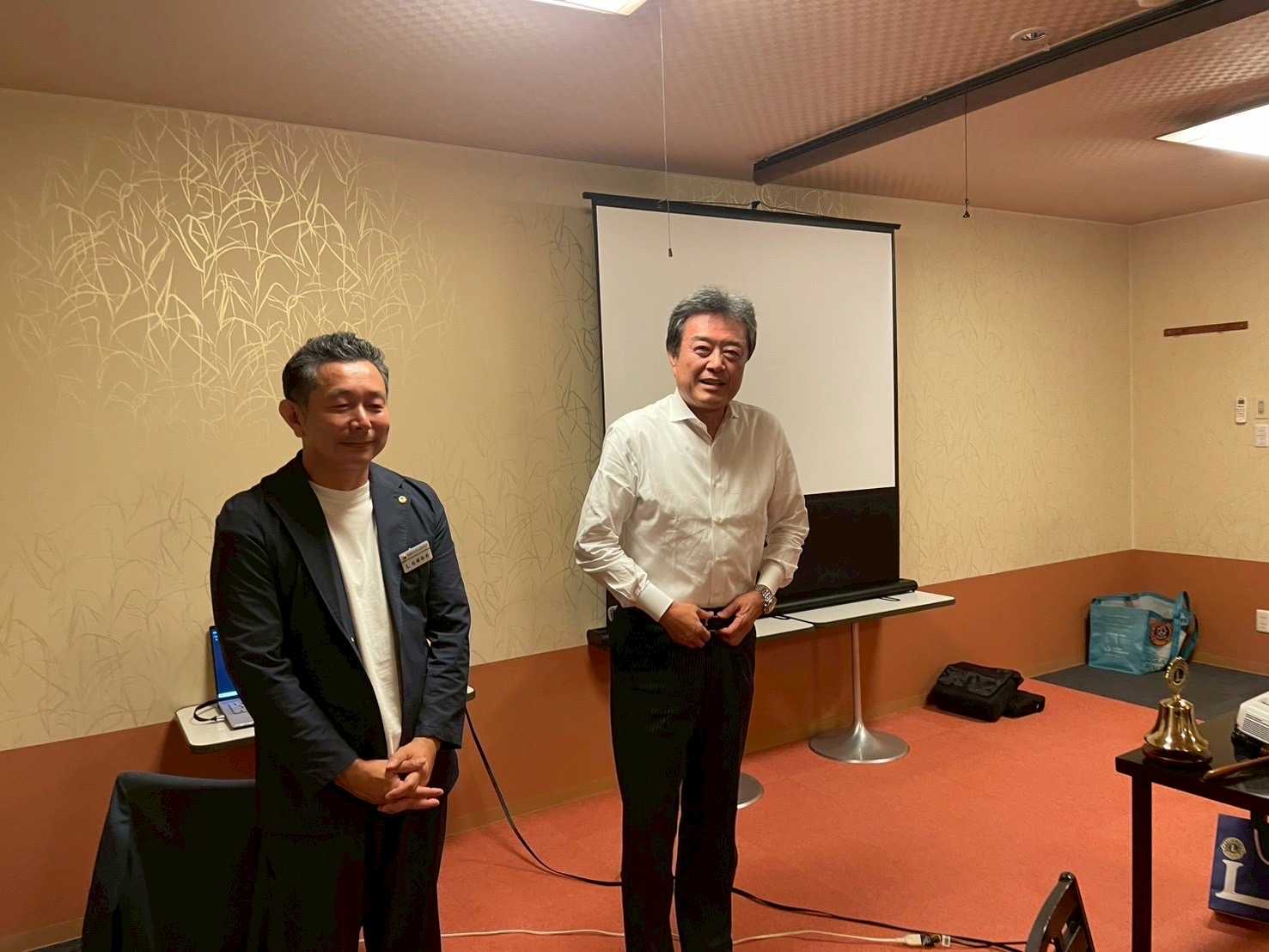 プロジェクターで、友好クラブの輪島ライオンズクラブのメンバーさんより