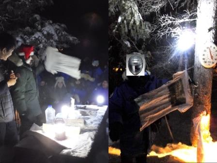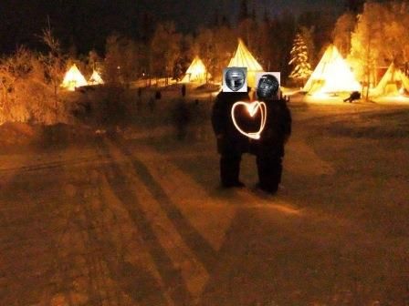 <オーロラが出るまで、手持ちのライトを回してハート型を・・・>