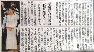 2011年5月21日に1000円で吉永小百合さんの「原爆詩朗読」をステージ前数列目で鑑賞?したのを思い出しました。彼女の笑顔が、仕草がよく見えました。