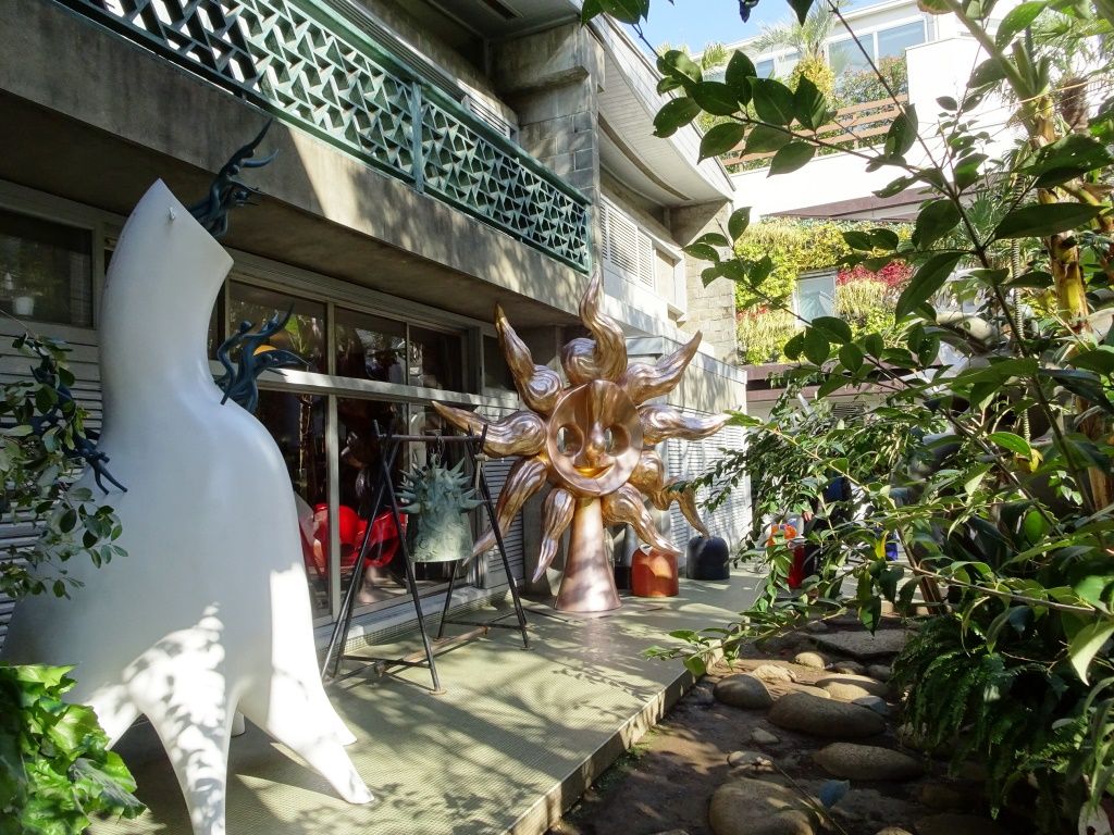 敷地はそれほど広くなく、玄関前右手の庭にある作品、入口手前右側のアトリエ展示と2F企画展示の3か所です。