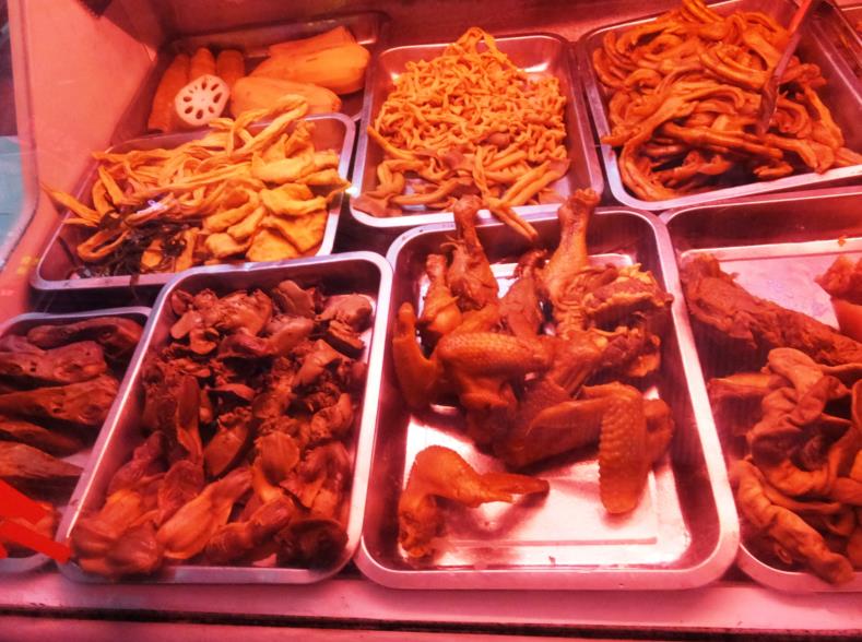 外に出ると、屋台が並び、そこでは、形が分かる姿の鳥、豚・・・。