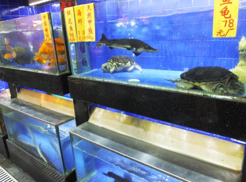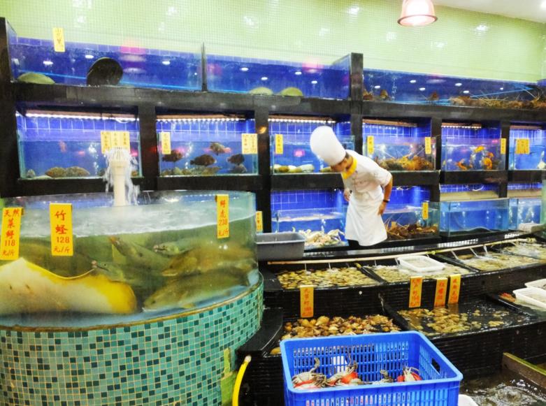 我々がコース料理をいただいた隣には、食材の水槽があります。