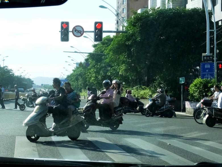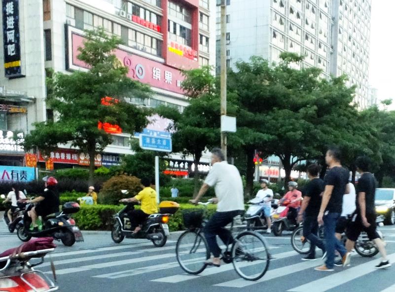 また、ヘルメットを被らないのはいいとして、人と一緒に、歩道や横断歩道も走ります。