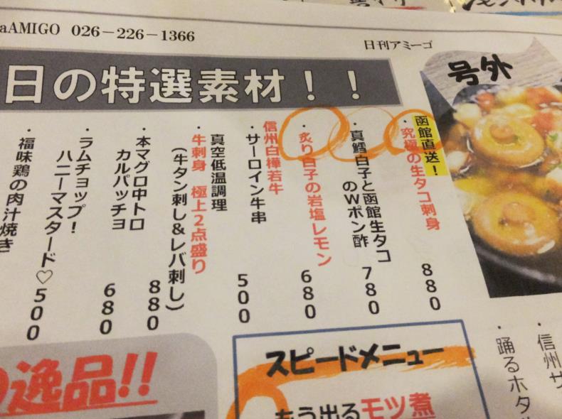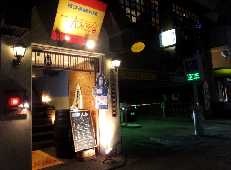 さて、お酒を飲みに夜の街へ・・・ちょっと変わった看板がある隣の居酒屋、西洋漁師料理「アミーゴ」が気になり、入ります。