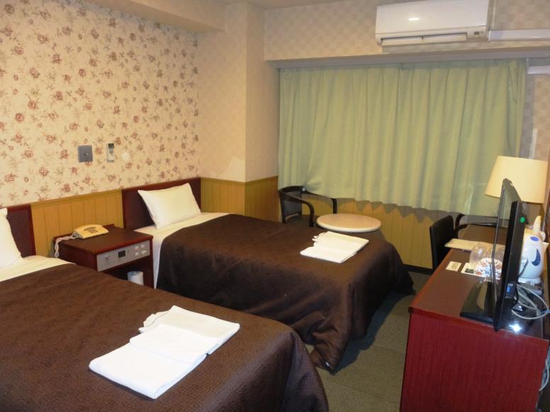いつものように、最安値を検索して見つけたホテルなので、部屋は狭く、やっとベッドを2台入れた感じです。