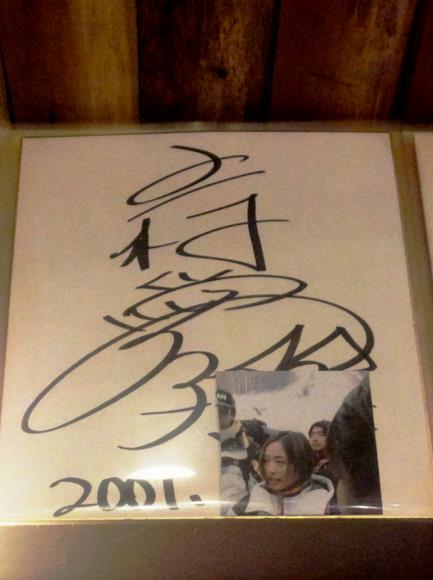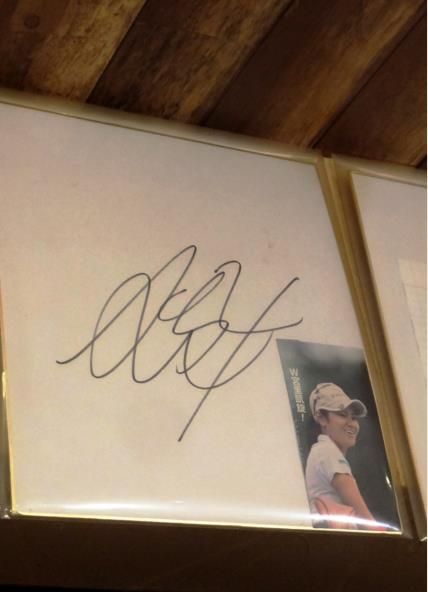 店内の壁に飾ってある色紙群を見渡すと、モーグルの上村愛子さんと、ゴルフの宮里藍さんのものを見つけました。