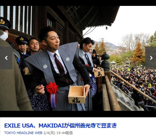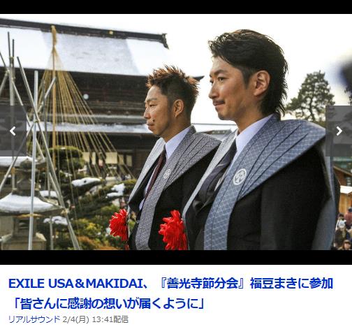 善光寺午後1時の特別来賓の欄に、EXILEのメンバー、ÜSA宇佐美 吉啓(うさみ よしひろ)さんと、眞木大輔(マキダイ) さんの名が、