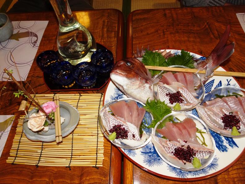料理も突き出しから鍋、蕎麦まで美味しい品々が並び、鯛のお造りが出てきて驚かされました。
