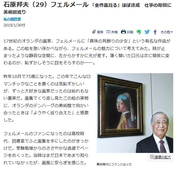日経新聞「私の履歴書」2019/1/30に掲載された東京海上日動火災保険相談役の石原邦夫さんと同じような構図ですが、館内の模様替えをしたようで、バックがちょっと違っています。