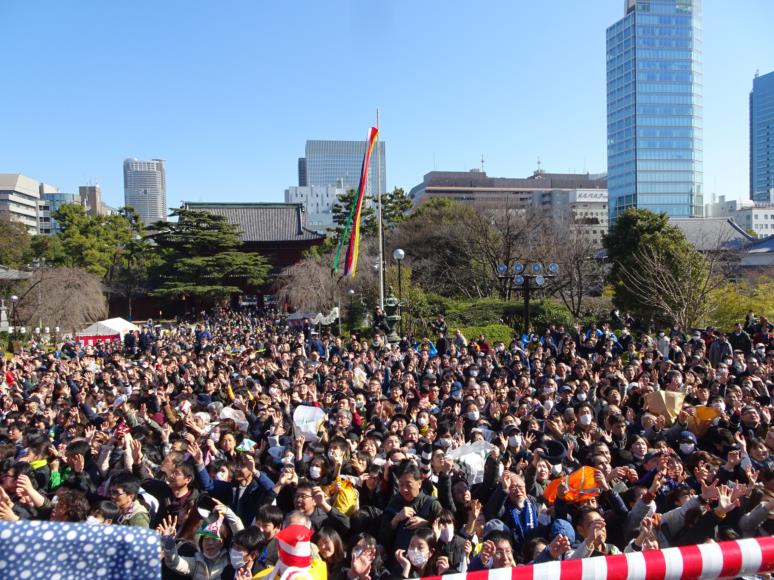 昨年に続いて、今年も増上寺の「節分追儺(ついな)式」で有名な方々と一緒に舞台から豆撒きです・・・下で豆を拾うのではありません・・・。(笑)