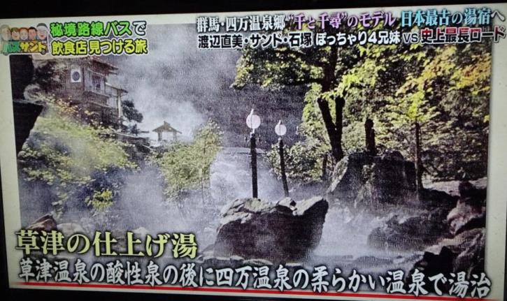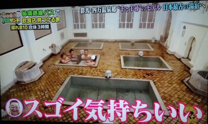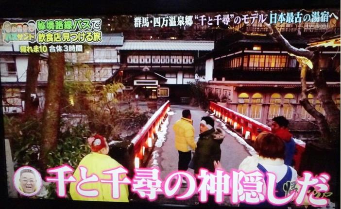 昨夜の19時、友人からメールが届き、何事かと思って見ると、昨年の新年会で訪れた四万温泉・積善館の番組が放送されているとのことで、早速、テレビ朝日に合せます。