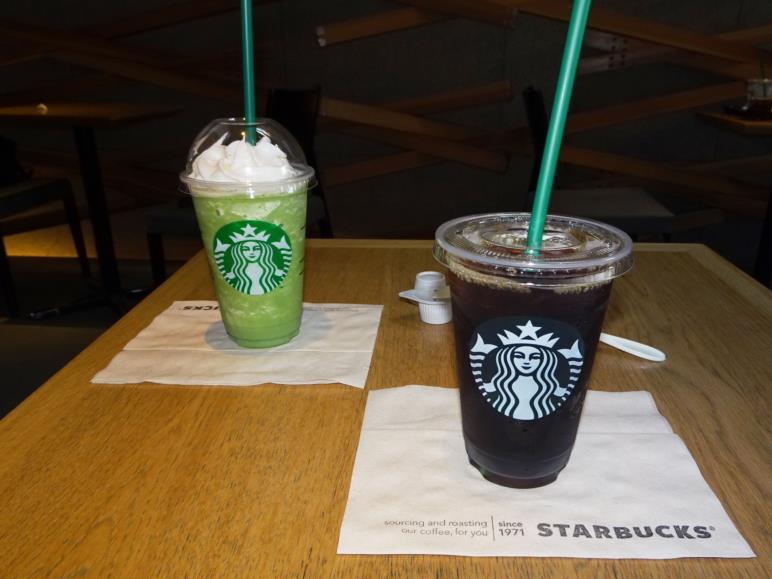 太宰府天満宮の参拝を終えて参道を戻り、往路で見つけた今話題の建築家・隈研吾氏設計の「スターバックスコーヒー 太宰府天満宮表参道店」で休憩です。