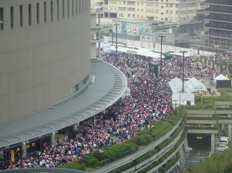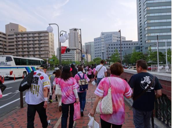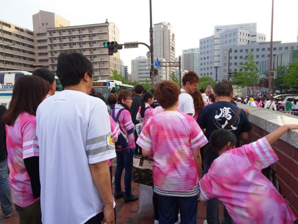 外に出ると、ピンクのユニフォーム姿の集団と合流です。