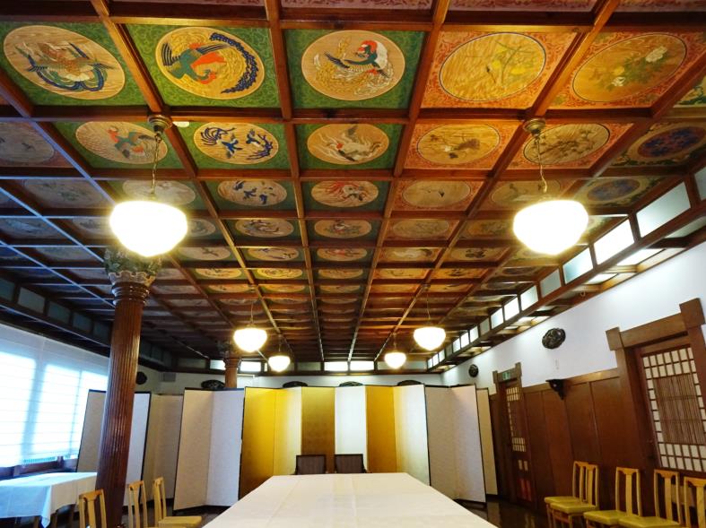 <前日の「館内ツアー」時、結婚披露宴で見られなかった大広間を見学>