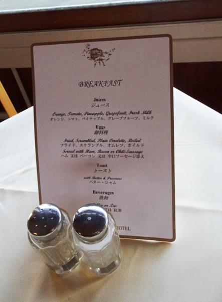 7時半、本館のメインダイニングルームへ移動し、朝食です。