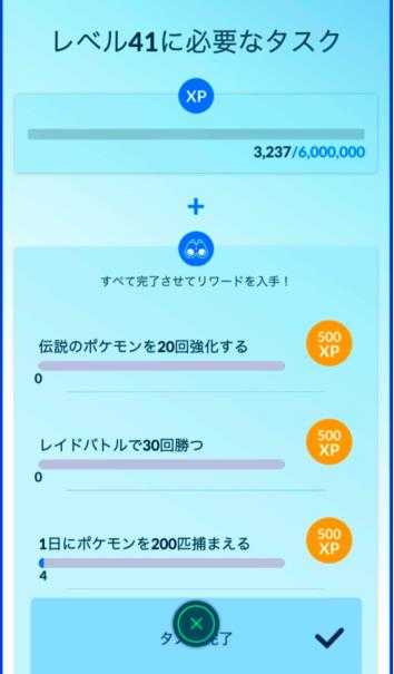 ■•トレーナーレベル41:ポケモン捕獲スキルをテストしましょう!トレーナーレベル41になるには、1日で数多くのポケモンを捕まえて、他のタスクも達成する必要があります。