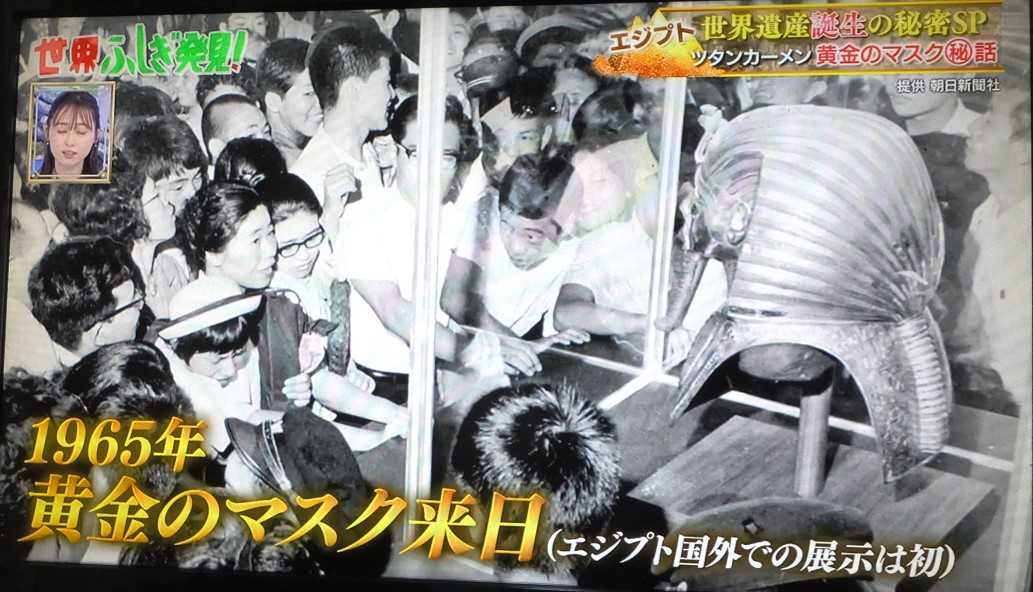 また、当時大きなニュースになりましたが、1965年、来日したツタンカーメンの黄金のマスク展では、入場者は293万人超え、112万ドルが義援金としてエジプトに寄付されたとのことです。