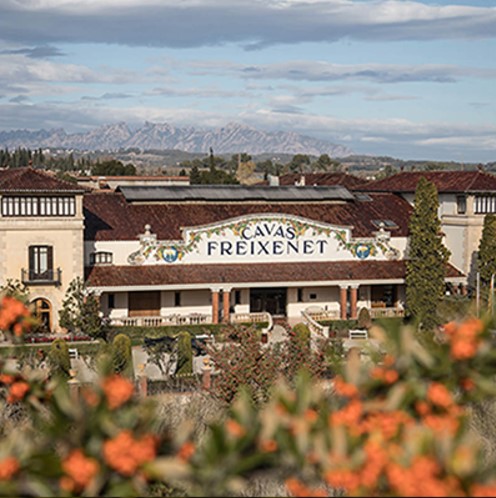 フレシネは、シャンパンと同じ瓶内二次発酵製法によるスペイン産スパークリングワイン(原産地呼称「カバ」)です。その生産数量はグループ全体で年間約1億2500万本にのぼり、販売数量世界第1位を誇っています。またそのうち8400万本が世界150カ国に輸出され、特にスパークリングワイン消費大国である、ドイツ、イギリス、アメリカで70%以上のトップシェアを持つなど世界各国で多くの人々に親しまれています。
