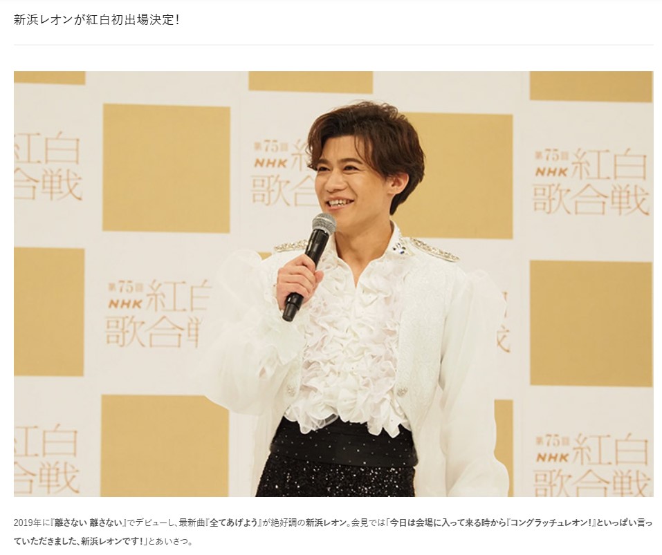 また先日もアップしましたが、新浜レオンさんが紅白に初出場です。