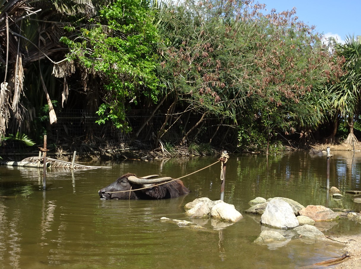 そして、水牛はゆっくりと水の中を進んで行き、ガイドのおじさんがいろいろ説明してくれ、説明が終わると沖縄の楽器三線を弾いて沖縄民謡を唄ってくれました。ゆっくりとした時間が流れ、心地よさを感じました。