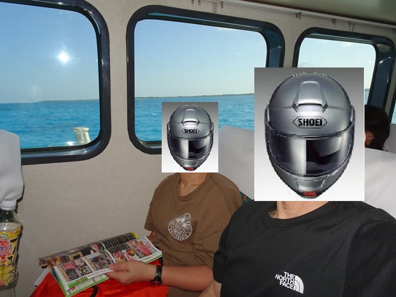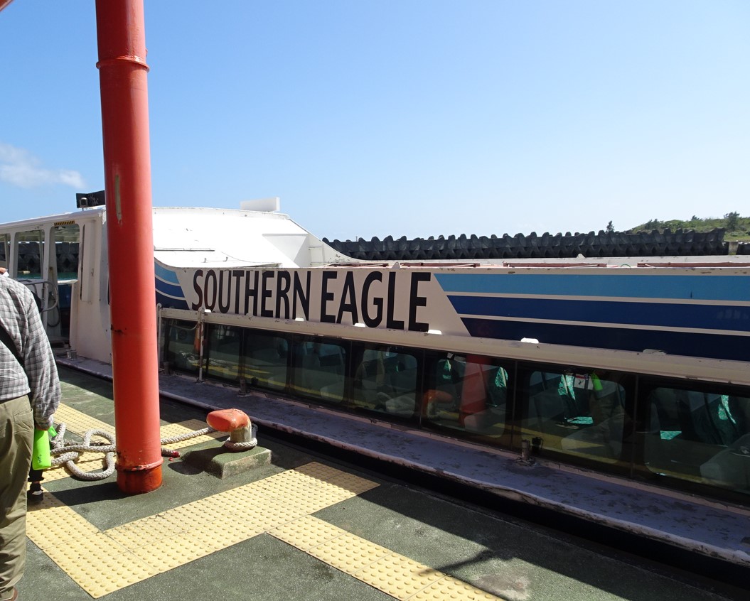 そして迎えのバスに乗り、西表島を移動し、港で石垣島行きの船に乗り、「具志堅用高像」がある港に戻ります。