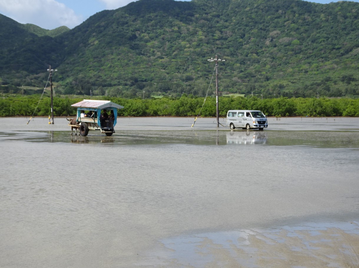 沢山の水牛車がゆったりゆったり由布島から西表島へ向かっています。