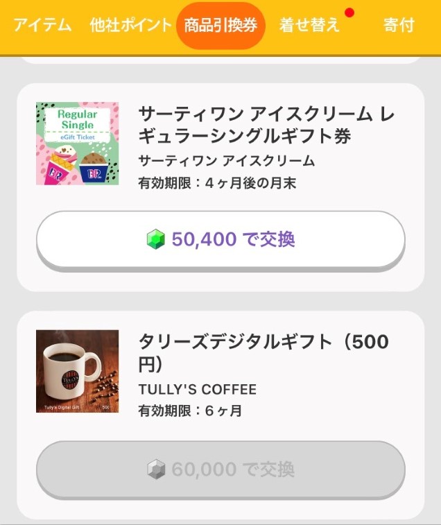 1年位前に始めて、50,400ポイント稼いで、サーティーワンのアイスクリームと交換です。