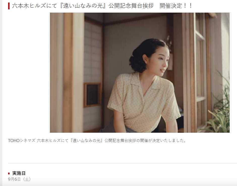 <六本木ヒルズにて『遠い山なみの光』公開記念舞台挨拶 開催決定!!>