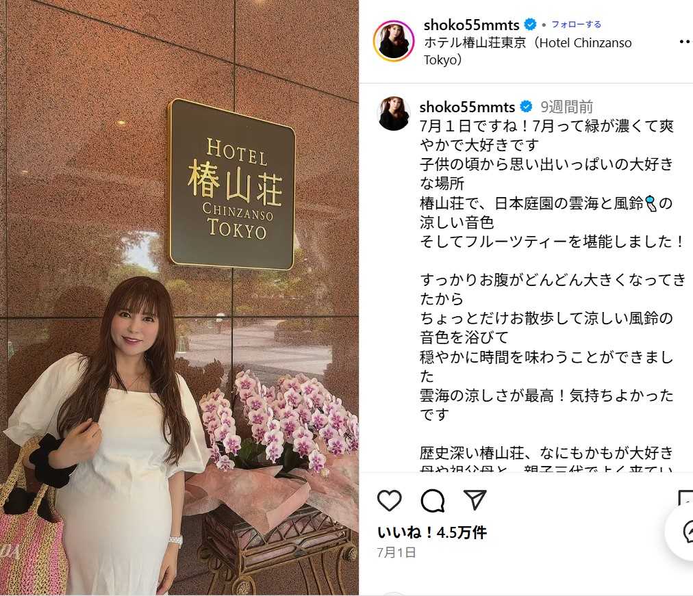 彼女のインスタグラムを眺めていると、時々椿山荘を訪れているようです。