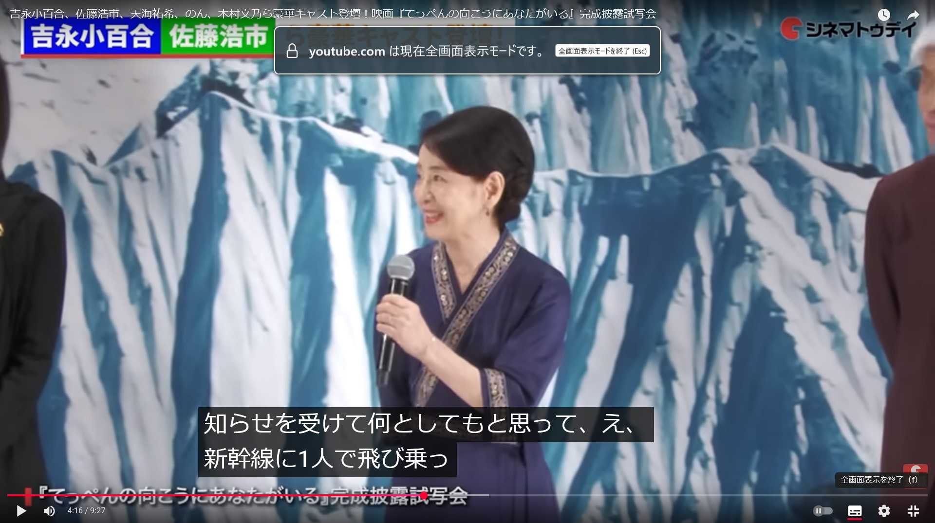<舞台挨拶で吉永小百合さんのが新幹線に一人飛び乗って話をした瞬間>