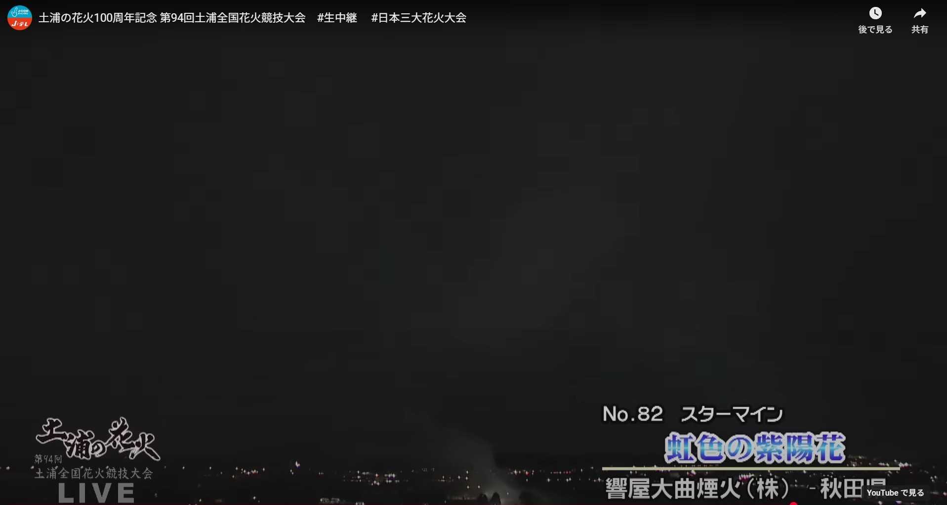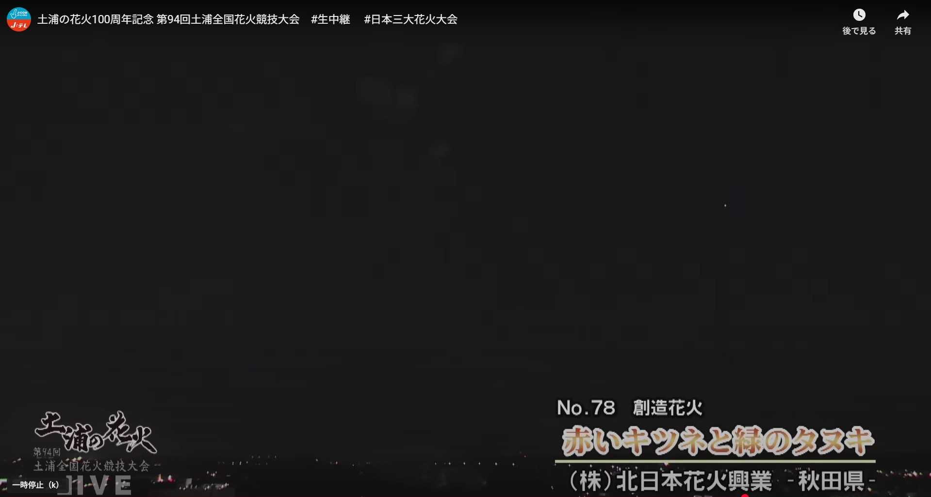後日、花火師の知り合いを持つ友人から、評価が高い花火は、「赤いキツネと緑のタヌキ」と、「虹色の紫陽花」とのことでした。