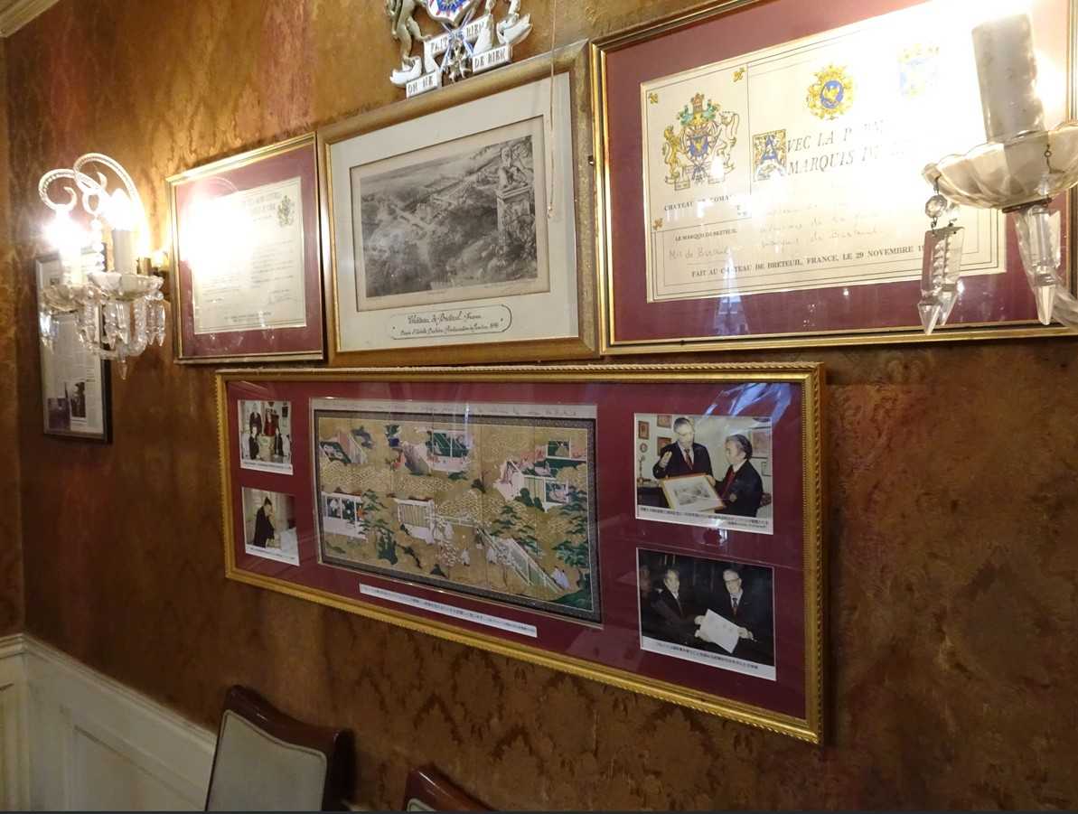 その中央にはフランスの名門「ブルトゥィユ家」の紋章、その右下に掲示してあるのは紋章使用の許可証です。