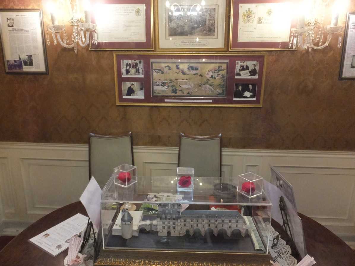 暖炉の上の絵はオギュスト・ブルトゥィユ.の肖像画が、壁面はブルトゥイュ城と文化締結の協定書、紋章使用許可証が飾られ、る。