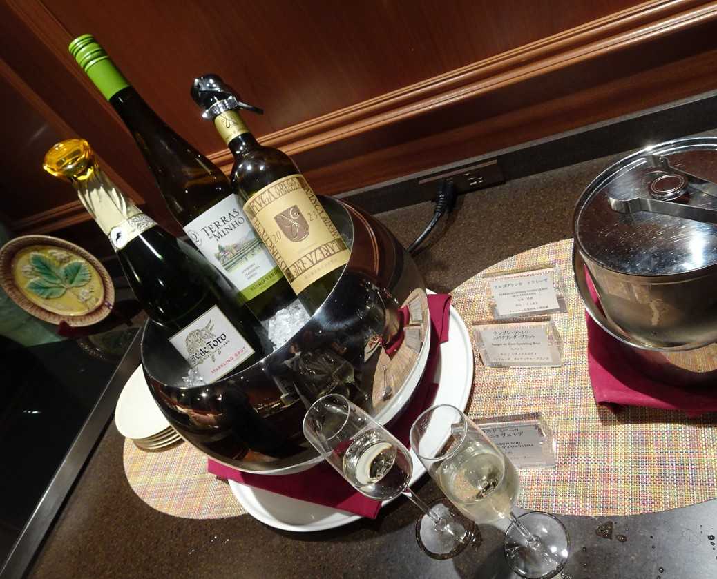 お言葉に甘えて、さっそく夕方ラウンジへ向かい、好きな飲み物や食べ物をいただきます。