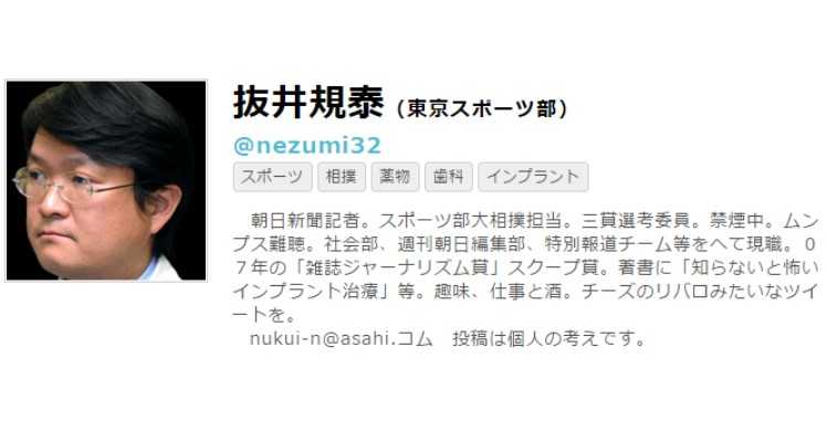 朝日新聞社のベテラン相撲記者が語る「大相撲こぼれ話」です。朝日新聞で「角界余話」を長期連載中の抜井規泰(ぬくい のちやす)さんの解説で進められます。彼は、元大相撲三賞選考委員も務めていました。・プロ野球は105年前、サッカーJリーグは34年前、相撲は341年前の1684年。・江戸人が選んだ男の中の男を「江戸の三男」とは、火消しの頭・与力(よりき:町奉行配下の同心の上役)・力士。・力士は1週間ほど洗髪せず、痒い時、男は爪楊枝、女は簪でかいたという。・お相撲さんの「まげ」は明治維新の断髪令の際に唯一断髪を免れたという伝統的ながらも、現在もなおお相撲さんが日常的に結っている髪型。力士「遠藤」がまげをゆうのに、2013年から2015年迄2年掛かった。最も遅い。・まげをほどくと、「カッパ頭」の力士が多い。(まげの下を剃っている)・墨田区両国二丁目にある寺「回向院」(えこういん)は、振袖火事(ふりそでかじ)と呼ばれる明暦の大火(1657年(明暦3年))の焼死者10万8千人を江戸幕府第4代将軍徳川家綱の幕命によって葬った万人塚が始まり。1768年(明和5年)以降、境内で勧進相撲が興行され、これが今日の大相撲の起源となり、1909年(明治42年)旧両国国技館が建てられるに至る。次が蔵前国技館、そして今の両国国技館に。・国鉄の土地(161億5000万円から11億5000万円値引かせ)に、鹿島建設が建てた。・山手は坂が多い、下町は橋が多い。・東領国が日本橋にあり、西両国が両国になった。・日本人の身長は飛鳥時代が最も長身で、音の平均が155cmになり、その後、肉を食うことで背が高くなった。・大相撲の優勝杯「賜杯(しはい)は天皇賜杯を指すことが多く、純銀製のカップでで、制作日は大正16年4月29日。楽しいセイナーで、勉強になりました。・・・・・・・・・・・・・・・・・・・・・・・・・・・・・・・・・・・・・・・・<■朝日新聞の抜井規泰(ヌクイ ノリヤス)>「ひが〜あしぃ〜」と呼び出しが声を張り上げる国技館の「東」。でも実際の方角は、北。そんな相撲コラムを書いてる新聞記者。水瓶座A型。大相撲三賞選考委員。元ベストナイン&ゴールデングラブ賞選考委員。玉成会研究室の落ちこぼれ。朝日新聞で「角界余話」「広重が描いた江戸」連載中。政治家とブン屋は、ヅラと整形は絶対ダメーーだと思う。・・・・・・・・・・・・・・・・・・・・・・・・・・・・・・・・・・・・・・・・記者がスタジオ生出演!>10/5(日)4pm - 5:55pm、SUNDAY FINISHING LINE横綱・大の里の優勝で幕を閉じた大相撲九月場所について総括。注目の安青錦の強さの秘密やケガの状態が気になる大関・琴桜のほか、両国国技館に飾られている「優勝額」についてなど、相撲のお話盛りだくさん。・・・・・・・・・・・・・・・・・・・・・・・・・・・・・・・・・・・・・・・・【今日のLifeHack:女が徳のある、いいシワのある顔相になる為には、本当にとことん自分のエネルギーを使い果たさないと、樹木希林】<「SUNDAY FINISHING LINE」にご出演><「賜杯」に、大正16年の文字が・・・>
