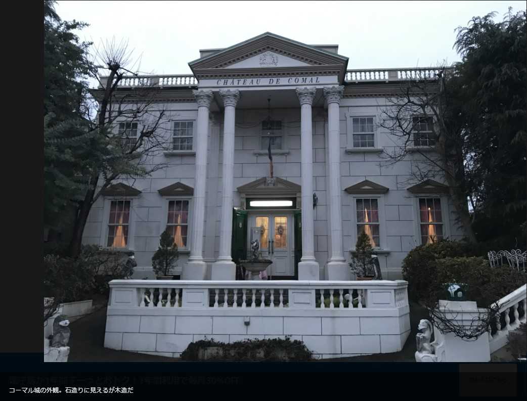 2023年2月21日の日経新聞に「再生ミュージアム」として大英博物館「グレート・コート」が掲載され、いつか行きたいと思いつつ、2020年1月2日に実現、7年掛かりました。第2弾は2021年2月4日の日経新聞に掲載された、千葉県柏市にある「コーマル城」シャトー・ド・コーマル(CHATEAU DE COMAL)です。いつか行きたいと思いつつ、やっと実現しました。 正式名称は「シャトー・ド・コーマル」、名称の中に「ド」が入いるのは本物のお城の証で、フランス城主会の公認なので「ド」が付いています。国道16号線のトンネル近く、柏市東柏の閑静な住宅街を走っていると、急に白亜のお城が現れ、一目でそれだと分かります。・・・・・・・・・・・・・・・・・・・・・・・・・・・・・・・・・・・・・・・・<■ヨーロッパの白亜のお城、建てて暮らして>日経新聞(千葉県柏市に本格様式で設計、サロン開き文化活動も 高丸重信)2021年2月4日「ヨーロッパの貴族みたいなお城に住みたい」。子供の頃に夢見た人は多いだろう。私はその夢を持ち続け、独学で建築デザインを学び、千葉県柏市に「コーマル城(シャトー・ド・コーマル)」を建てた。文化人が集う場として、18世紀フランスで流行したサロンの文化も受け継ぐ。コーマル城の外観。石造りに見えるが木造だ石造りのように見えるが、実は木造だ。コリント式の柱は、ガス管をモルタルで覆った。中に入ると、極楽鳥を描いたステンドグラスやシャンデリア、天使が舞う天井画が見える。奥には豪華な装飾を施した舞踏の間や、オルガンを備えた礼拝堂。2階にかやぶきの茶室、地下にワイン蔵があり、裏庭には神殿も建つ。これを260平方メートルの敷地に凝縮した。1944年に香川で生まれ、貧しい時代に幼い頃を過ごした。クリスマスのとき母に「サンタクロースの家が欲しい」とねだったが、連れて行かれたのは木工所。絵を見せると、職人さんがミニチュアを作ってくれた。ものづくりの面白さを知り、写真集で魅了されたヨーロッパの城を自分で建てたいと思った。高校から柏に下宿し、東京の高校に通った。大学では建築デザインを学びたかったが反対され、法学部を選んだ。その代わり、書籍やヨーロッパ映画を繰り返し見て建築様式を目に焼き付けた。卒業後は飲食店で働き24歳で建築デザイン事務所と、近くにフランス風中華料理店「皇帝児(コーテル)」を開いた。資金をため、77年に33歳で念願の城造りに着手した。中華料理店は閉め、デザインの仕事も絞った。妻の喜久子が働き生活を支えてくれた。感謝しかない。講演やコンサートを開く「舞踏の間」理想の城を頭に思い描いていたので、設計図はすぐに描けた。職人を指導し、細かい彫刻などは自分で手掛ける。資金との見合いで、敷地は徐々に拡張した。建物部分は30年ほどで完成したが、2018年に取り外し可能な能舞台を造るなど進化を続けている。周囲は木々が茂る自然豊かな場所だったが、すっかり住宅街になってしまった。本家というべきフランスにはおびただしい数の城がある。その城主会会長を務めるブルトゥイユ侯爵に手紙を書き、交流が生まれた。84年にはブルトゥイユ城のチャペルで侯爵立ち会いのもと、妻と結婚式を挙げた。建築に資金をつぎ込んでいたため、日本で式を挙げていなかったのだ。我々は当初、控えめに「コーマル・ハウス」と名付けていた。だが侯爵は建築様式がヨーロッパの城を踏襲していることを確認し、小さくても「城」を名乗ることを認めてくれた。息子のフランソワさんは、コーマル城の名誉城主を引き受けてくれている。城は器である。その中身として、人々が学び合うサロンを作ることは、高校時代からの夢だった。柏や隣の我孫子市などにまたがる手賀沼周辺は「北の鎌倉」と呼ばれた。作家の志賀直哉や武者小路実篤、美学者の柳宗悦、民俗学者の柳田国男ら様々な文化人が住み、交流していたからだ。歴史を知った私は、この土地だと思い定めた。85年に「コーマルサロン文化賞」を創設。功績があった人を表彰し、文化活動をしていただいている。俳優の黒柳徹子さんやバレエの森下洋子さん、パリ・オペラ座で活躍した指揮者マリウス・コンスタンさんら、そうそうたる人が小さなサロンで話をしてくれた。黒柳さんは「サロンが好きだから」と一人で電車に乗り柏まで来てくれた。今年、喜寿を迎える。サロン文化を次世代につなぐことに力を注ぎたい。(こうまる・しげのぶ=建築デザイナー)・・・・・・・・・・・・・・・・・・・・・・・・・・・・・・・・・・・・・・・【今日のLifeHack:期待されないっていうのが一番いいものができるの、樹木希林】<2021年2月4日の日経新聞に掲載されたコーマル城」>