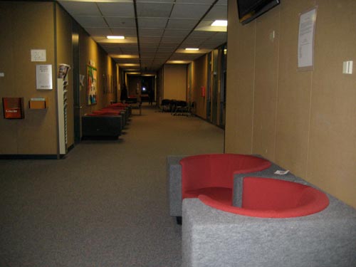 大学に行ってきました。廊下がひろく、廊下に大きないすやいすのそばにはコンセント。ワイアレス、テーブル、自販機、掲示板と学ぶ環境や空間が、大学も進化していると感じました。特に、椅子(ソファ)?のデザインが気に入りました。セーラムのChemeketa大学です。