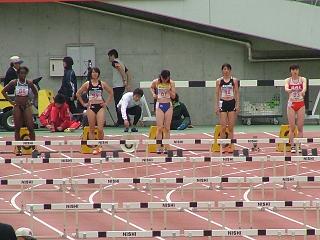 織田記念観戦記、ようやく5回目になります。終わってからかなり経ってしまってますが、文とかをまとめるのがへたくそなもんで・・・。おまけに連休も終わり、仕事も始まったもんだからさらに書くペースが落ちるだろうな・・・。前置きが長くなりましたが続けるとしますか。女子100mHの決勝からです。私の注目は池田久美子選手でしたが、見事に期待に応えてくれましたね。ジャマイカの選手が優勝で池田選手は2位でした。しかし、1位の速報タイムは12秒台、2位の池田選手との差はわずかだったので、もしかしたら日本記録?と期待が持たれました。結果、惜しくも日本記録には0.04秒足りず、しかし、13秒04の日本歴代2位の好タイムでした。日本記録にならなかったとはいえ、やっぱり笑顔が出ますよね。また、男子110mHの方は追い風参考ながら日本記録に0.06秒差、13秒45の好記録でミズノの内藤真人選手が優勝しました。(画像がうまく撮れなかったです・・・)次回は100m決勝の予定ですが、ここで予告しております。男子の画像がまたしてもうまく撮れずありません。ということで、また女性ばかりの画像になりますが華やかになるからいいのかも