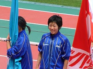 またしても久々~って感じでブログを書きますが、新シリーズもまた陸上の観戦記です。まあ、興味のある人だけでもみてやって下さい。4月に引き続き5月も陸上観戦に行ったんですが、毎年なら5月は宮崎のゴールデンゲームズに行ってました。これって陸上の中でも長距離好きな人にはたまらない大会で、中学生から実業団まで、すべて中・長距離レースなんです。その上、大会の雰囲気、観客の応援も独特で、一度行ったら病み付きになりそうなくらいです。でも、今年はちょうどその日に外せない用事ができ、行けなくて何かつまらないなあって思ってました。しかし、その一週間前にちょうどいい大会を見つけました。それが関西実業団陸上競技大会です。同じ日に大学の後輩たちが出る関西インカレがあり、どちらに行こうか大いに悩みましたが、鳴門と大阪、体を二つに分けることもできないし、金銭面の問題もあり、鳴門の関西実業団へ行くことを決めました。車のナビに従い、のんびりと行くこと約4時間、鳴門の陸上競技場につきました。競技が始まる約2時間前、前月に行った織田記念の時の感覚からするとちょっと遅かったかな、って気もしたんですが、スタンドの方に行くと人はほとんどおらず。メジャーな大会じゃなかったらこれが普通なのかなあ・・・。たしかに、この大会は3日間ありますが、個人的には1日目の10000mのレースで野口みずきさん対福士加代子さんの丸亀ハーフ以来の対決が一番見てみたかったですし、3日目だと実業団の大会ならではの女子長距離チーム対抗のマイルリレーがあり、そちらも興味があったんですが、どうしても2日目のこの日以外は自分の予定が入っていて無理だったんです。とはいえ、土曜日にここまで人がいないとは陸上の人気があまりないようでちょっと寂しいです。そうこうしているうちに少しずつですが観客も増え、競技30分前、大勢の選手たちがぞろぞろと競技場内へ入ってきました。え、いったい何があるんだろう?と思っていたら、実はこれから開会式があるとのこと。うわ、ラッキーと思い、真正面から見える位置へ席を移動しました。まさか、有名な一流選手たちは出ないだろう、と思っていたらいましたねえ。ここで何人か紹介しておきます。(活字ばかりだとつまりませんからね。)まずは女子マラソンの日本記録保持者シスメックスの野口みずき選手。そして女子800mの日本記録保持者、京セラの杉森美保選手。今回は開会式での表彰のために来たみたいで、競技の方には出場しませんでした。そして忘れてはいけないこの人、女子3000m、5000m日本記録保持者で、今年はハーフマラソンの日本記録も塗り替えた、ワコールの福士加代子選手↓↑実はこれ、私が撮った影のベストショットでして、福士選手がくしゃみをした直後の画像が偶然にも撮れてしまったものです。(ちゃんとした画像もありますよ。)また、開会式では見かけませんでしたが、女子3000mSCの日本記録保持者、早狩実紀選手も大会に参加してました。こう考えると女子の中・長距離の日本記録って関西の選手ばかりだなあ。1500mの日本記録も須磨学園高校の小林祐梨子選手が持ってるし。残るは1万mだけってことで、今回は長くなってしまったのでここまでにして、次回からはメインの競技の観戦記に移る予定です。もちろん、前回のシリーズと同じように予定は未定ってことでどうなるかは分かりませんが。