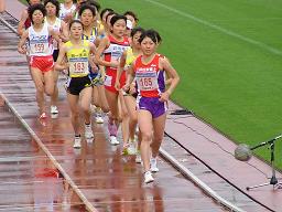 ついに観戦記も10回目になってしまいました。これを書き始めたのはいつだったか、それすらも忘れそうになるくらい長く書いています。自分でもなぜもうちょっと簡単に書けなかったのか、ちょっと後悔しております。今回は女子5000m編その2ということで、持ちタイムが速い選手が集まったA組についてです。当日欠場した選手はいたもののさすがに一線級が出てきましたね。外国人選手はもちろんのこと、小崎まり選手や弘山晴美選手などの五輪や世界選手権経験者らも出場してました。その中で私が注目してたのはこの選手↓チームでも長距離区間を任されるようになった三井住友海上の大平美樹選手です。この選手も近所・・・ということではないですが、私と同じ町の出身なんです。もちろん、現在実業団に所属する私の町出身の選手の中ではトップですね。で、レースはスタートしたんですがやっぱりこんな展開になるんですね。↓外国人選手が固まって先頭を走り、それに日本人選手がついていくという、もうすっかり見慣れてしまったような光景です。しかし、弘山選手を始め、佐藤由美選手や藤永佳子選手など、資生堂勢が前に食らいついていました。結局は3位までを外国人選手が独占しましたが、さすがというか弘山選手や小崎選手が元気なところを見せていました。で、私が注目していた大平選手は・・・タイムは自己ベストとそんなに変わりないもののいいところなく終わったかな?って感じでした。まだ大阪国際女子マラソンを欠場する原因となった故障の影響が残っているのかな?私の近くで見ていた人は「大平は駅伝ではいいんだけど・・・」っていうようなことを言ってました。よく見てる人は見る目が厳しいな~。そう言われないよう、さらにブレイクしてほしい、と思うのは私の町の人たちの望みです。やっぱり同じ町出身の選手が出てると私情が出た観戦記になってしまいました。次回はもすぐゴール間近?男子5000m編の予定です。さあ、書き終えるのは果たしていつ