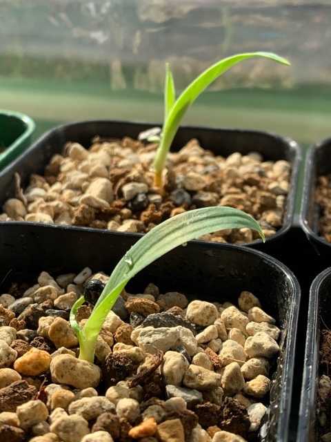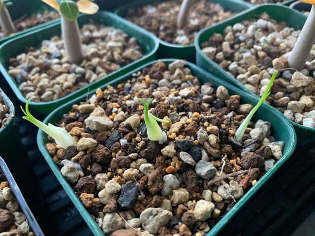 いやね、令和2年の11月頭に播種して、1ヶ月、2ヶ月と音沙汰なしだったdasylirion gracilisが、急に出てきた。令和3年1月頭。 しかも、培養土に混ぜちゃってたから、鉢上げしたいろんな植物の鉢のあちこちから。 しかも、かなり深い場所から。 凄いねー。種すごいね。 この根が太いネギみたいなやつ。 根を痛めないようにバラして、まとめて、植えてみる。 まぁ、毎日そんな感じです。 もう10は出たかな。 発芽率0パーセントから、急に50%超えてきた。 楽しみですね。