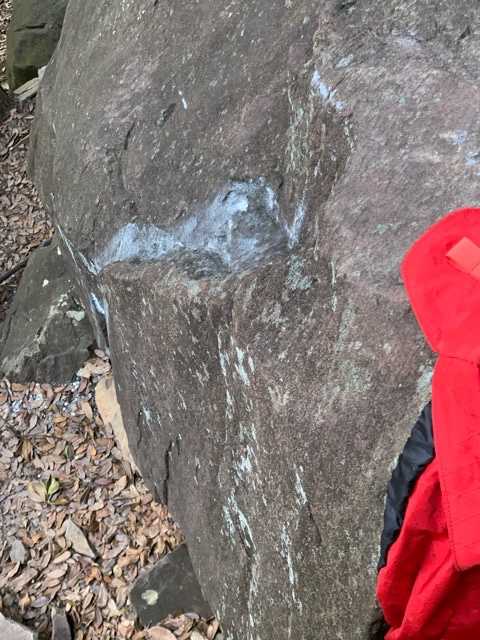 恐らく夏の暑い間も頑張ってトライされていたんだろうと思いますが、クラック沿いのチョークや、マーキングなどそこらじゅうに目立っていました。特に液体チョークやノリの良いチョークは岩にもノリノリになります。